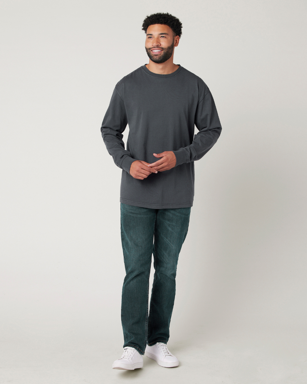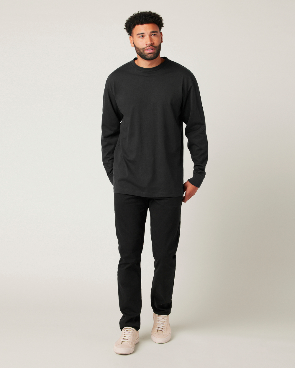 This chill everyday tee features a crewneck, long sleeves, a boxier cut, and soft heavyweight fabrication. A simple minimalist tee that can be worn by itself or layered if needed with a zayline Sweater or Jacket.