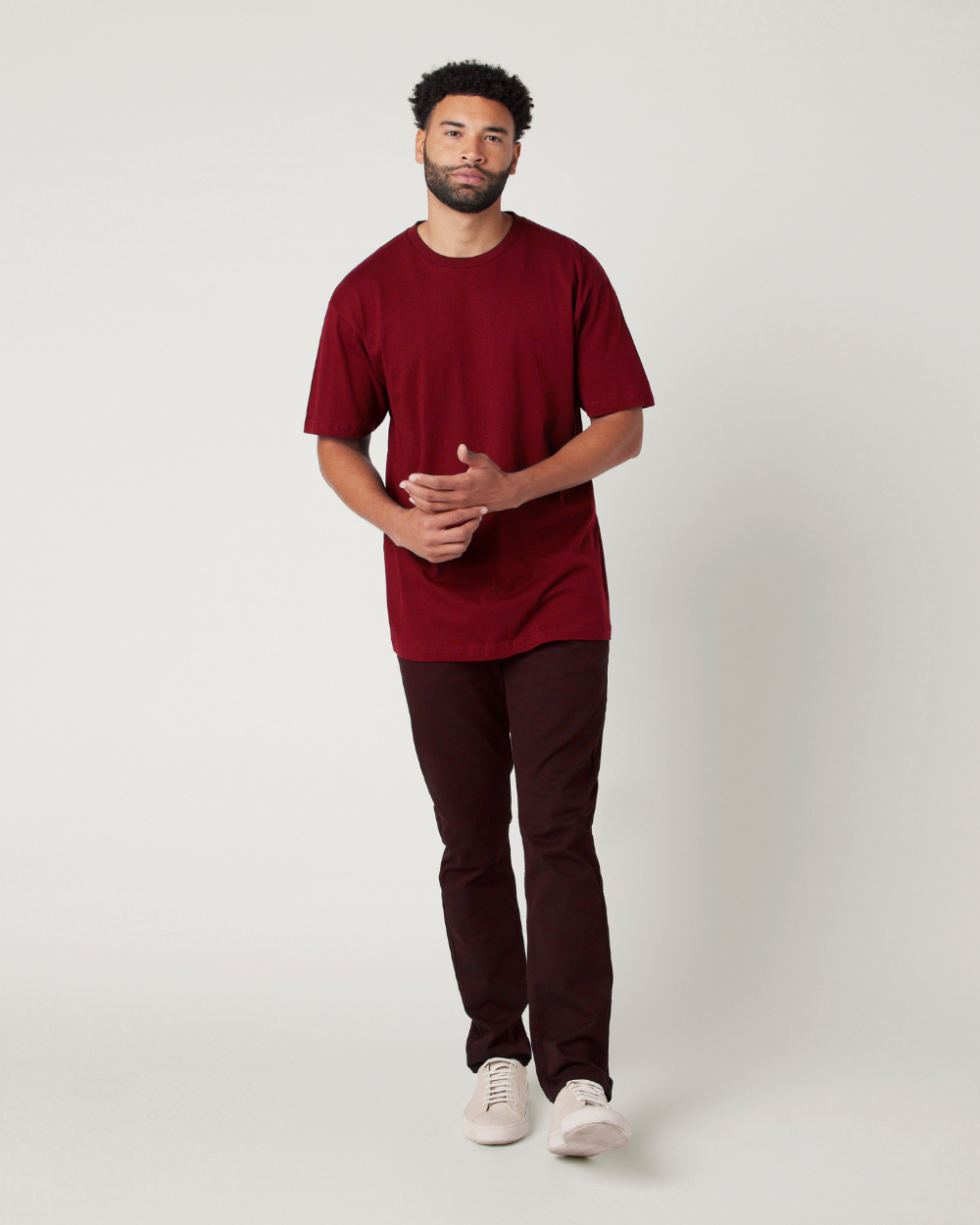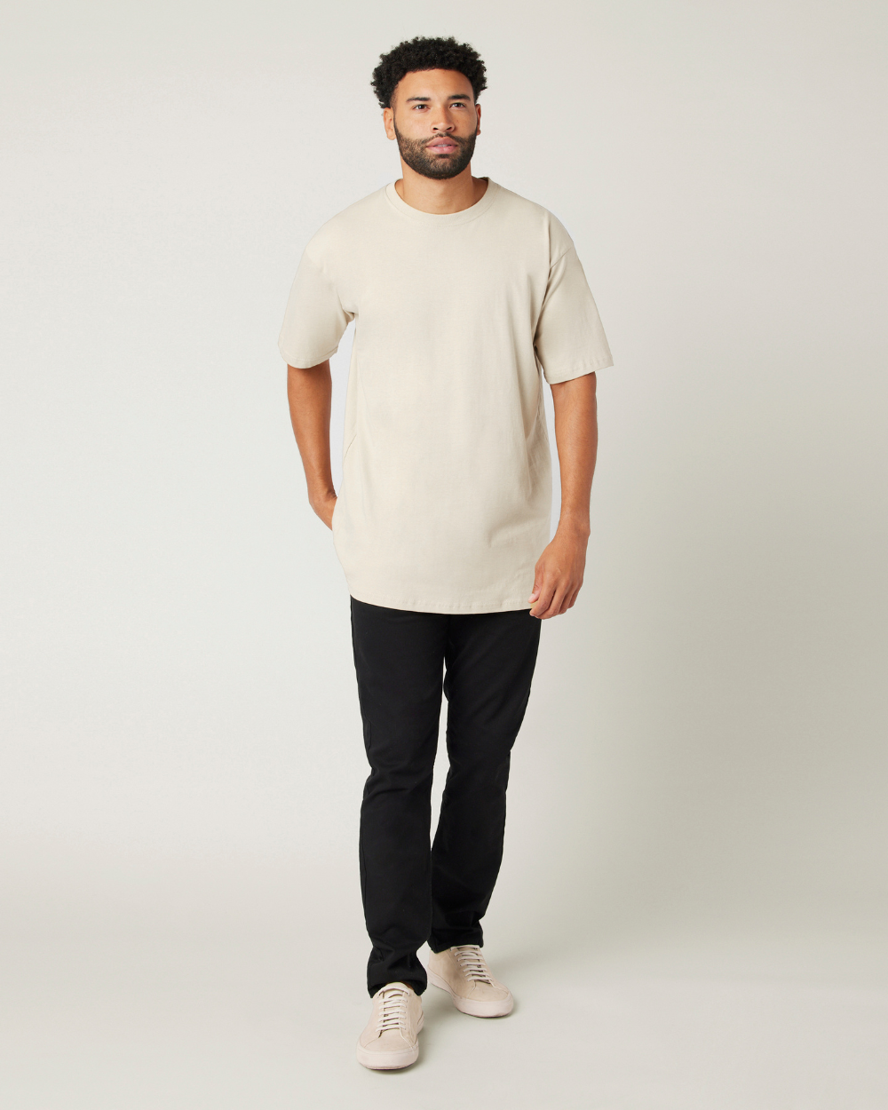 This chill everyday tee features a crewneck, short sleeves, a boxier cut, and soft heavyweight fabrication. A simple minimalist tee that can be worn by itself or layered if needed with a zayline Sweater or Jacket.