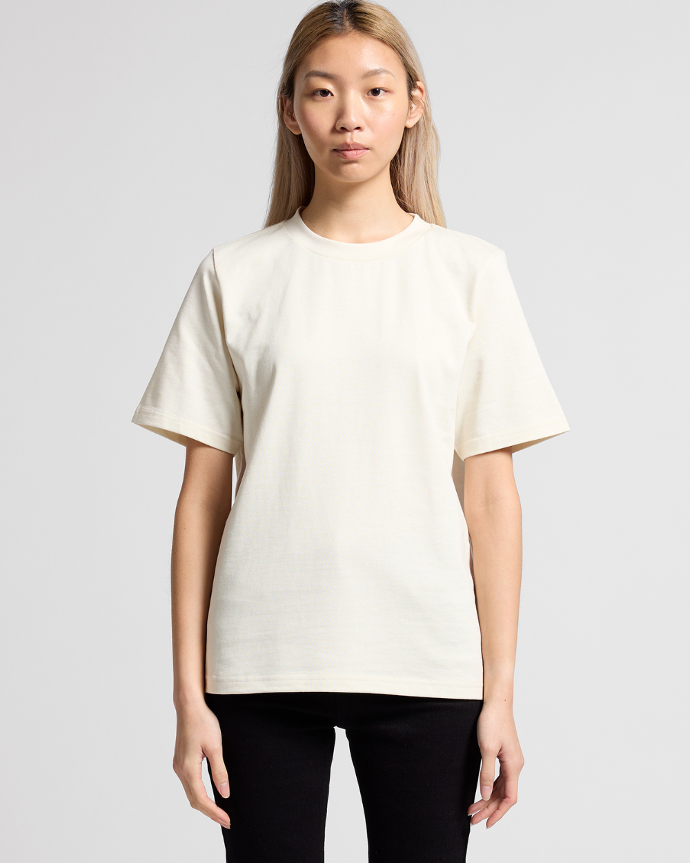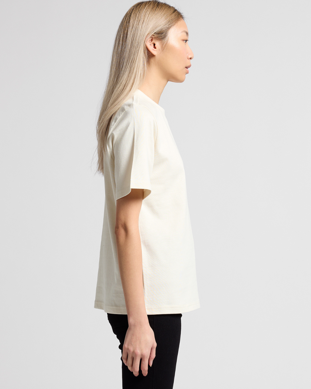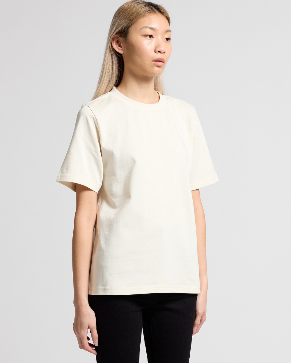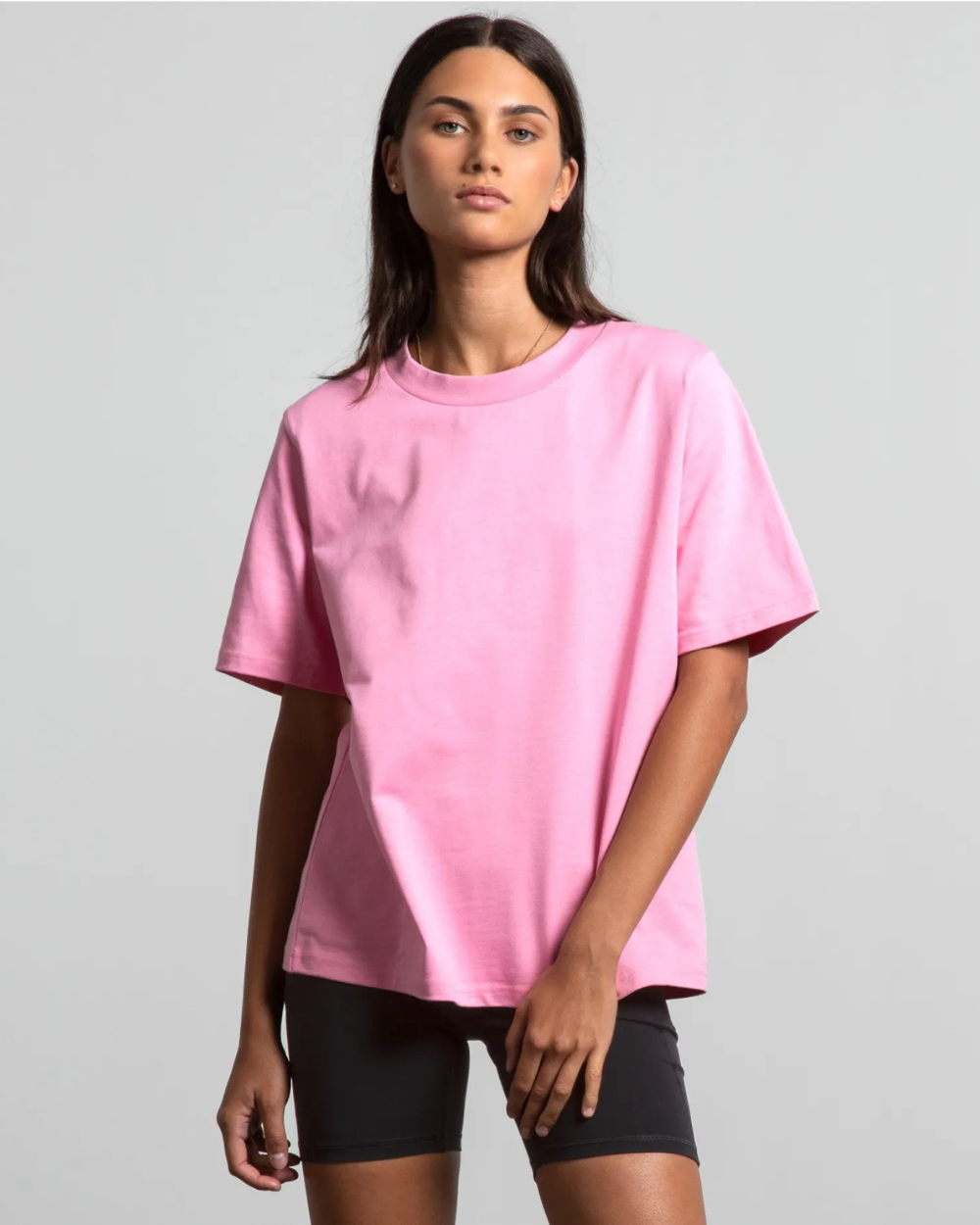 Inspired by the oversized warm-up sweaters and T-shirts from the '90s, The Women's Heavy Tee is one of the heaviest and most comfortable t-shirts made with special attention to durability and comfort. Crafted from premium 100% carded cotton, its heavyweight construction ensures durability and a luxurious feel. This heavyweight t-shirt features a dropped shoulder, a wider ribbed collar, longer sleeves, and a wider body while keeping the same length as the other Heavyweight tees.