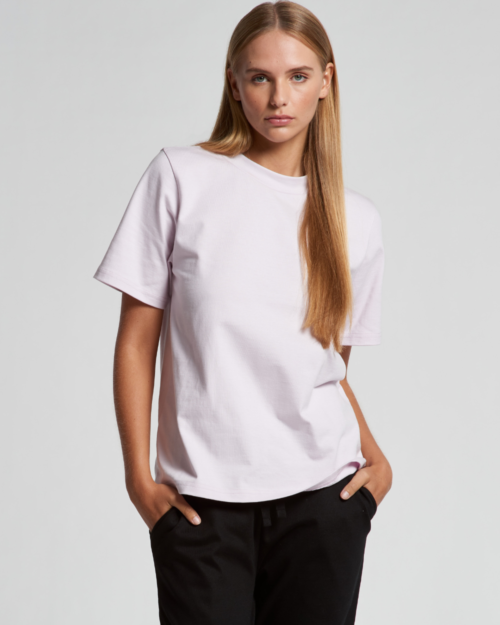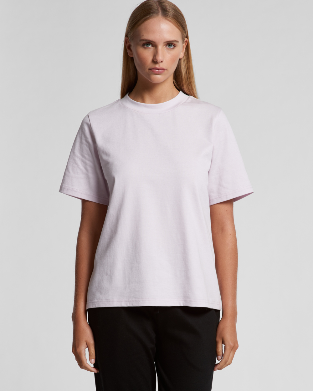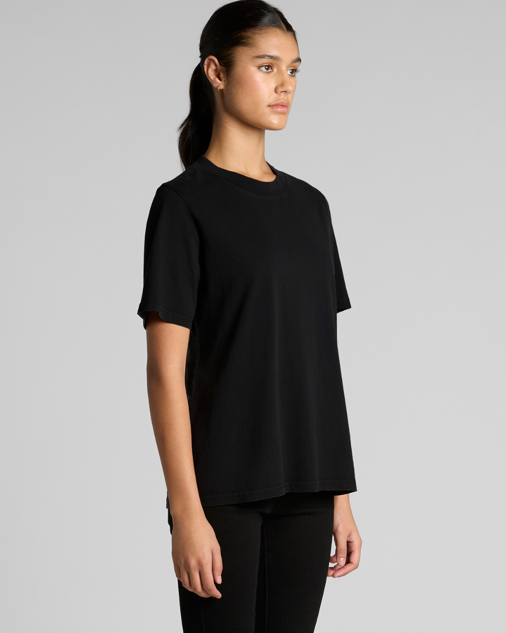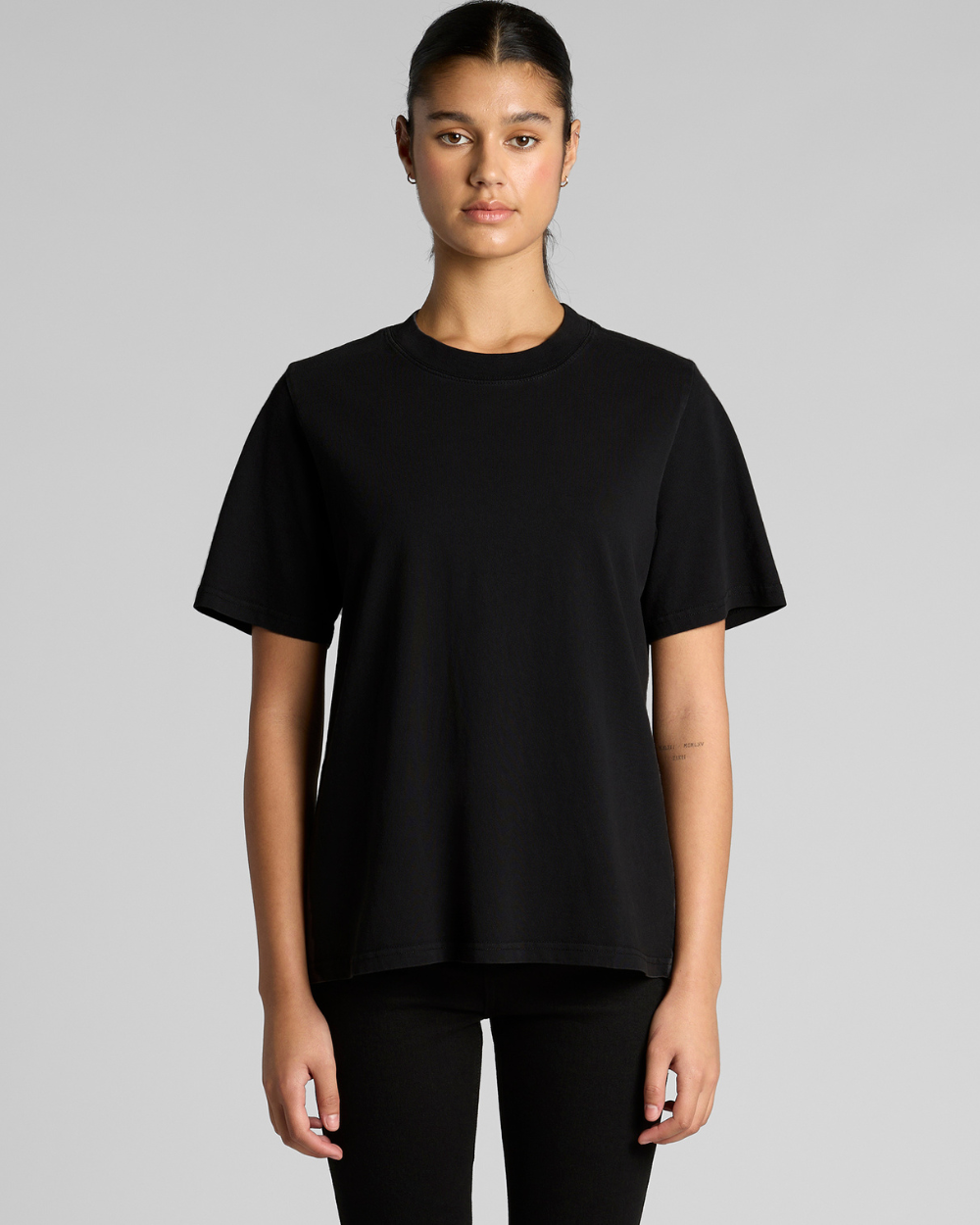 Inspired by the oversized warm-up sweaters and T-shirts from the '90s, The Women's Heavy Tee is one of the heaviest and most comfortable t-shirts made with special attention to durability and comfort. Crafted from premium 100% carded cotton, its heavyweight construction ensures durability and a luxurious feel. This heavyweight t-shirt features a dropped shoulder, a wider ribbed collar, longer sleeves, and a wider body while keeping the same length as the other Heavyweight tees.