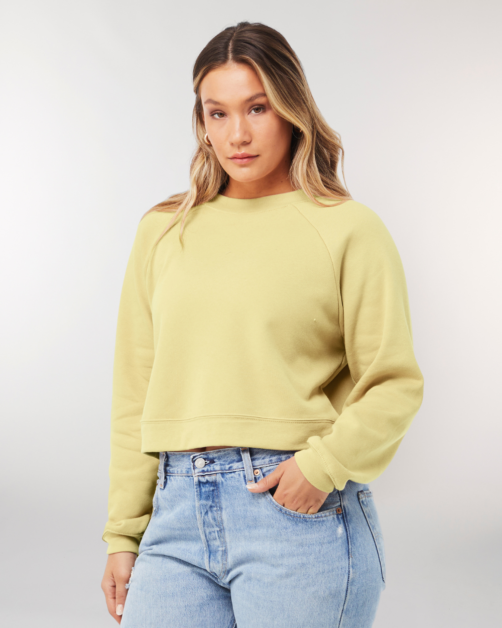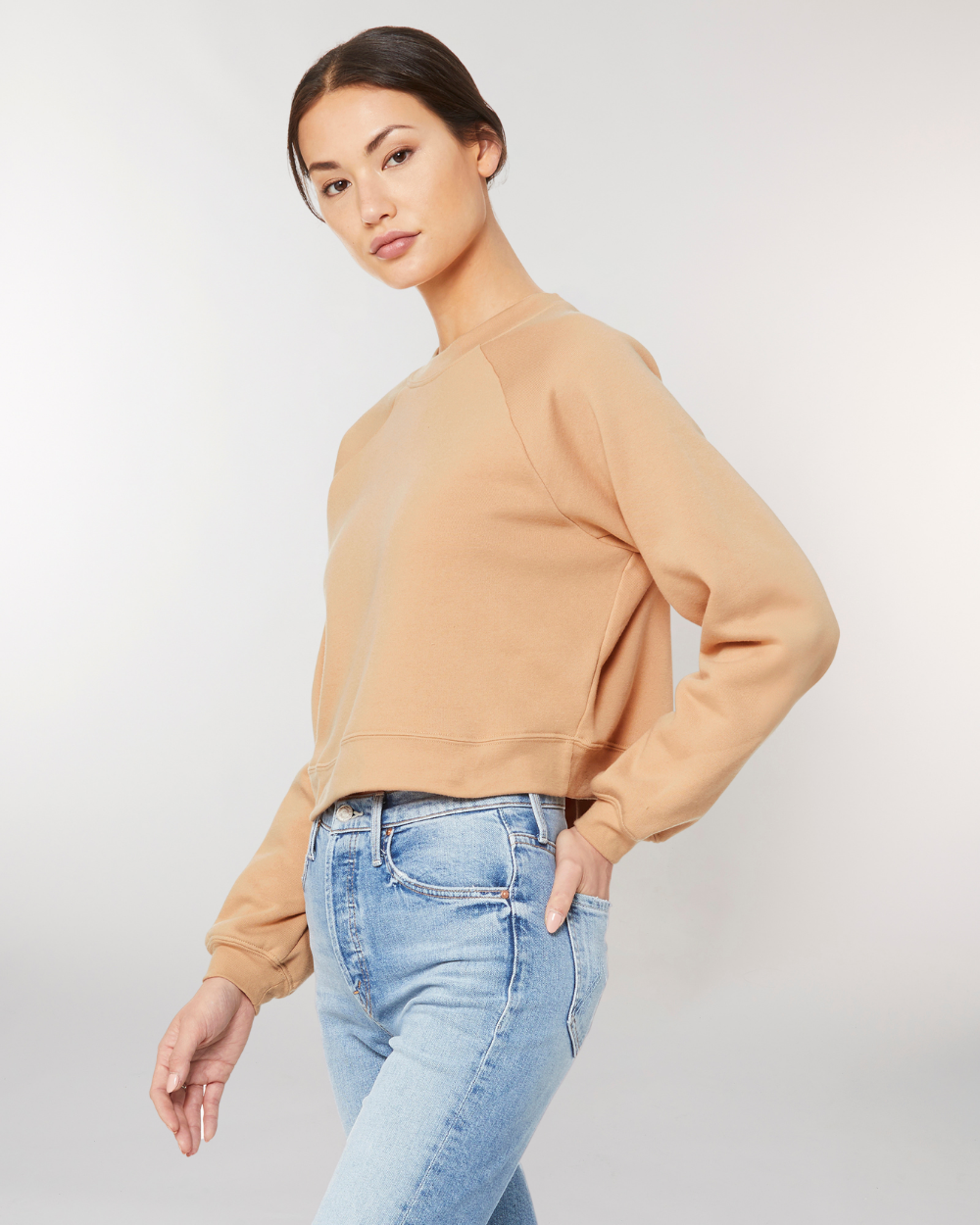 Le sweat-shirt en polaire raglan pour femme présente une coupe courte légèrement carrée avec un col flatteur, des manches raglan et un ourlet cintré. Ce sweat-shirt décontracté est parfait pour toutes les occasions. Associez-le à vos jeans et baskets préférés pour un look plus décontracté.